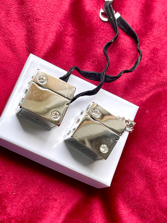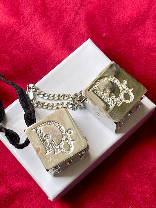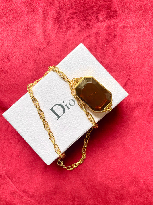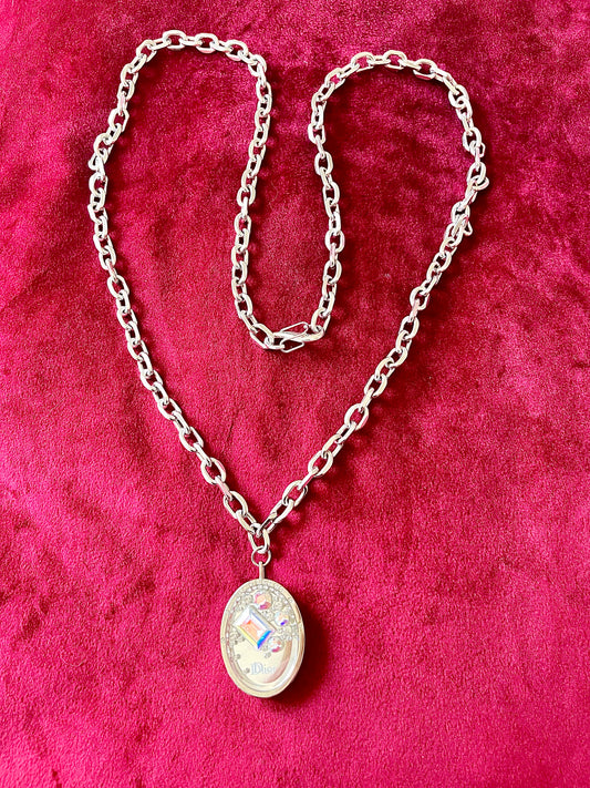 Golden Dior Couture Jewelled Encrusted Luminizing Highlighter Glow Makeup Pendant Necklace & Mirror