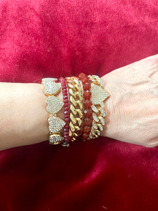 Iced Out Set Gold Rhinestones Chain Bracelets