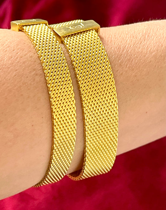 Vintage 1970s YSL Gold Mesh Bracelets Refinished in 18K Matte Yellow Gold Unisex