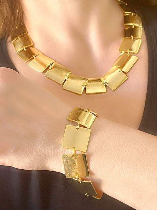 Vintage Iconic Paco Rabanne Cubic Jewelry Set Art Deco Style