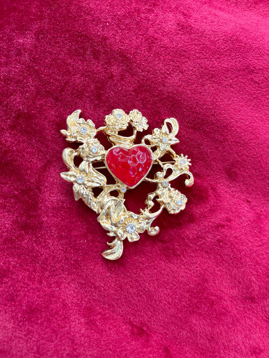 Metal Heart Red Color Brooch Art Nouveau
