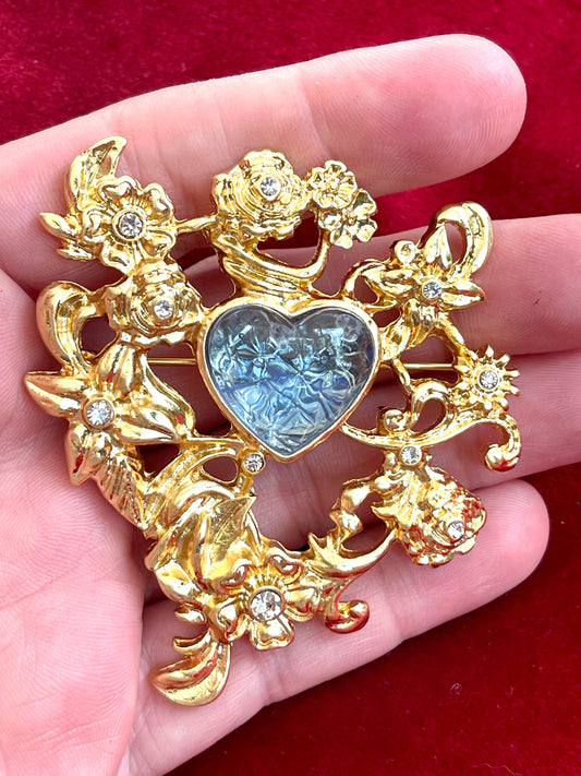 Blue Heart Art Nouveau Gold Metal Color Brooch