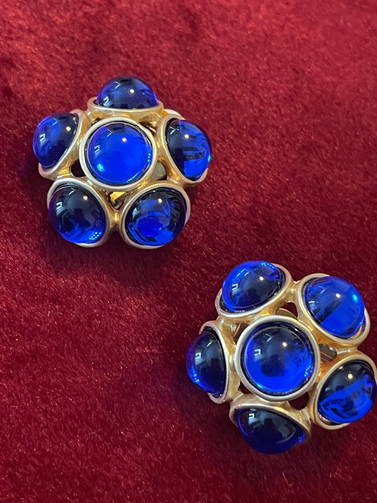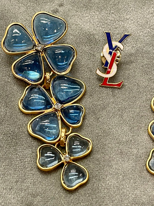 Set of Blue clover earrings + YSL French pin