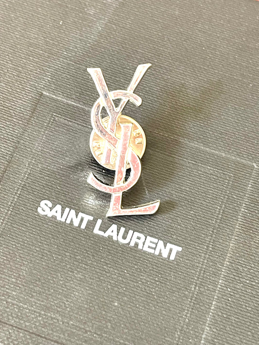 Silver Tone Authentic YSL Unisex Metal Pin Daily Use