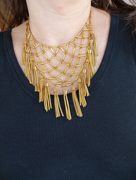 Yves Saint Laurent Rare Authentic Vintage Tassel Multi Chain Necklace