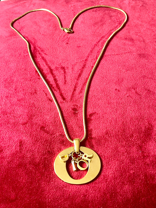 Vintage Dior Gold Logo Pendant Necklace – Y2K Statement Jewelry – 1990s/2000s – 46 cm