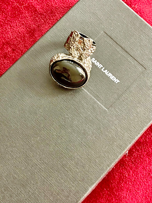 Yves Saint Laurent Vintage Arty Black Stone Dark Grey Metal Ring