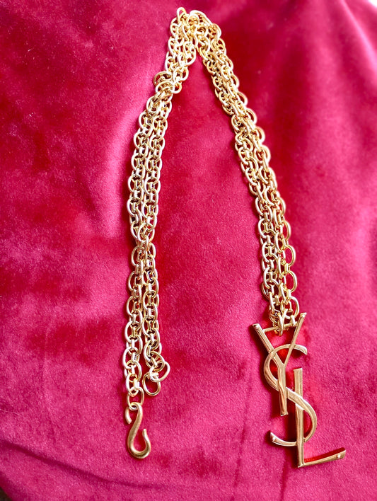 Yves Saint Laurent Authentic Vintage Pendant Bag Charm Steel Necklace Belt