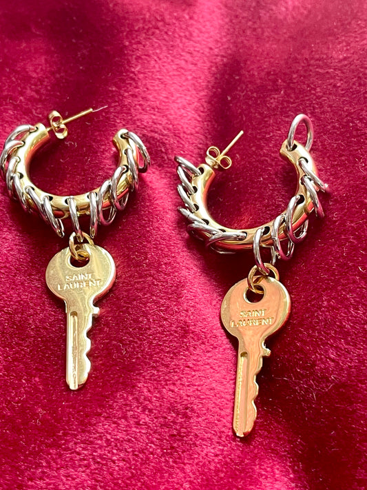 Modified Hoop Earrings Vintage Saint Laurent Golden Keys