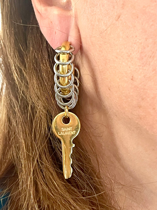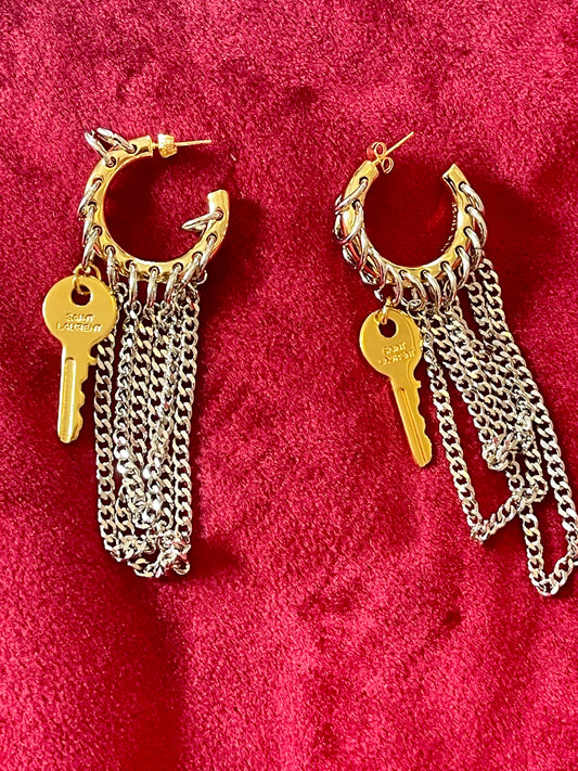 Modified Funky Hoop Earrings Vintage Saint Laurent Golden Keys