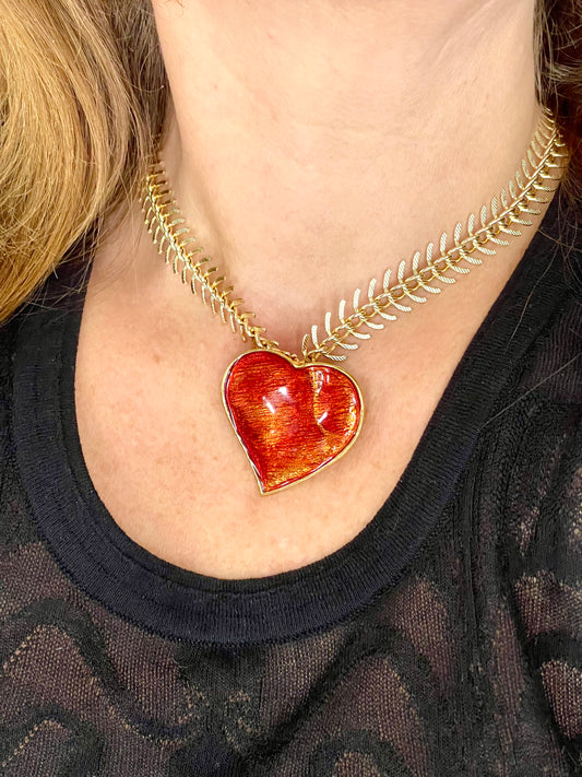 Enameled Heart Brooch Pendant . Vintage 90’s Yves Saint Laurent