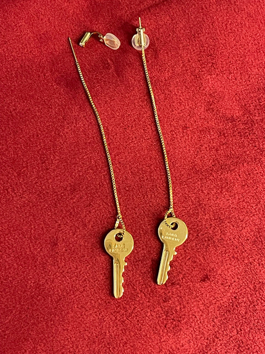Vintage Saint Laurent Golden Keys Clip On Earrings