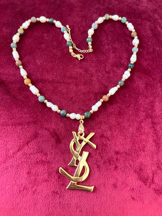 YSL Refurbished Enameled Gold Vintage Charm Pendant Pearl Necklace
