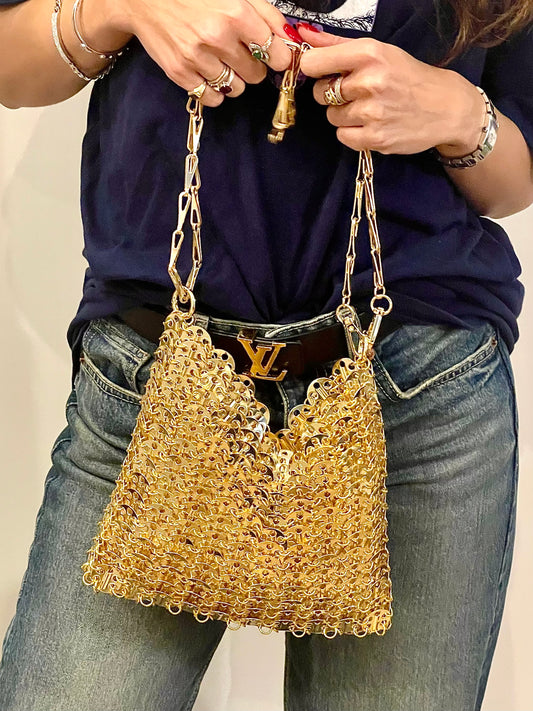 Large Gold Sparkle Design Metal Bag Style Paco Rabanne