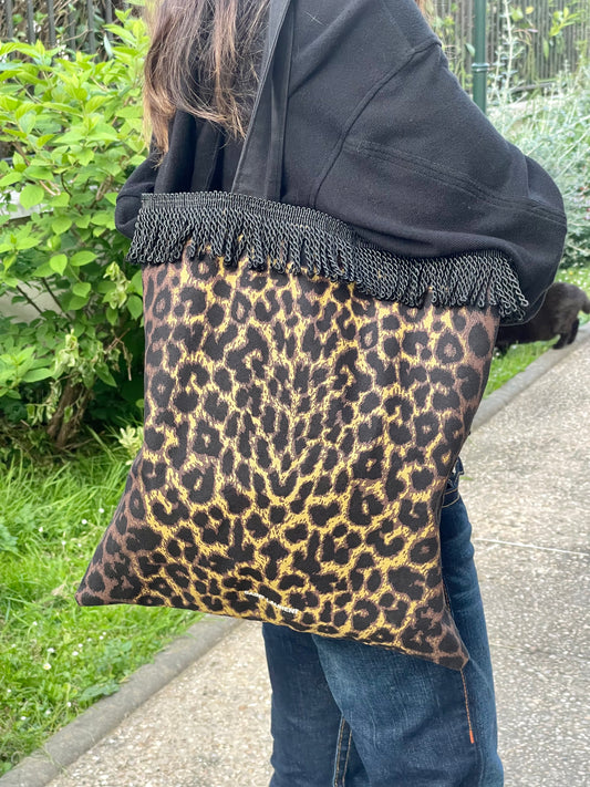Leopard Cotton Canvas Tote Yves Saint Laurent