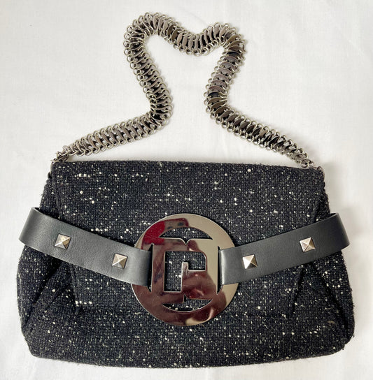 Tweed Vintage Rare Paco Rabanne Shoulder Bag Metal Chain