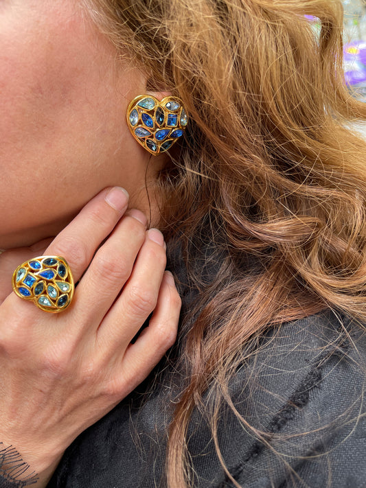 Saint Laurent Blue Heart Crystals Authentic Vintage Earrings
