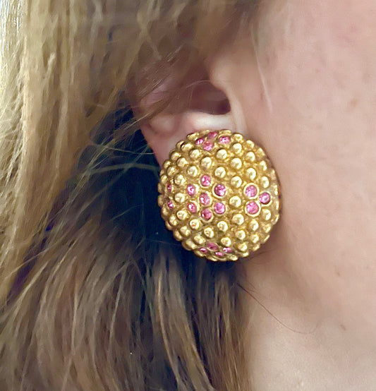 YSL Authentic Round Gold Color & Pink Crystals