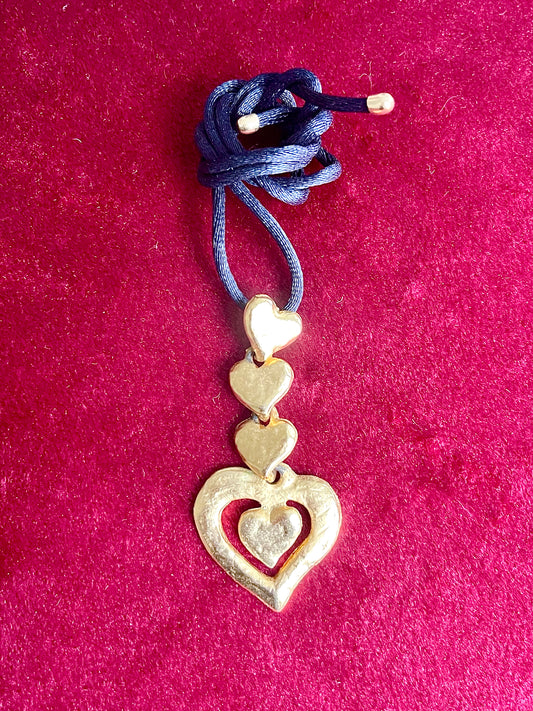 Four Hearts Pendant Vintage Yves Saint Laurent Old Gold Color Pendant With Original Black Satin Cord .