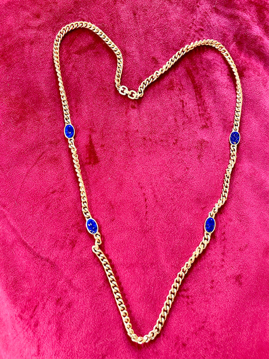 Vintage Two-Sided Necklace by Grossé (Dior ) - Rhinestones & Blue Gold Leaf Stones