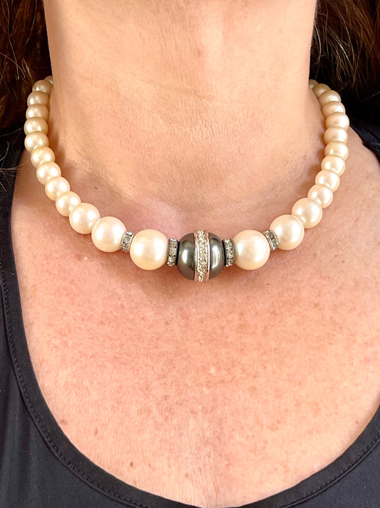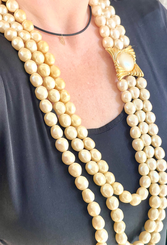 Rare Vintage Yves Saint Laurent Faux Pearl Statement Necklace