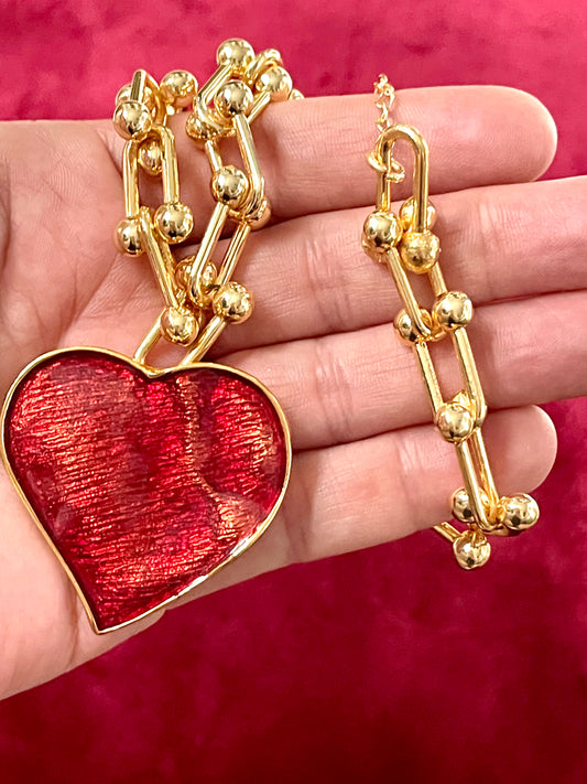Enameled Heart Brooch Pendant . Vintage 90’s Yves Saint Laurent