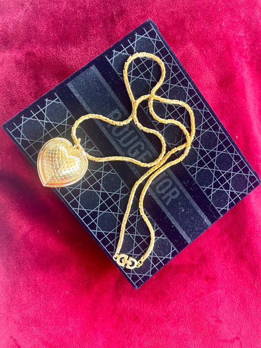 Refurbished Vintage Authentic Long Dior Necklace Heart Pendant