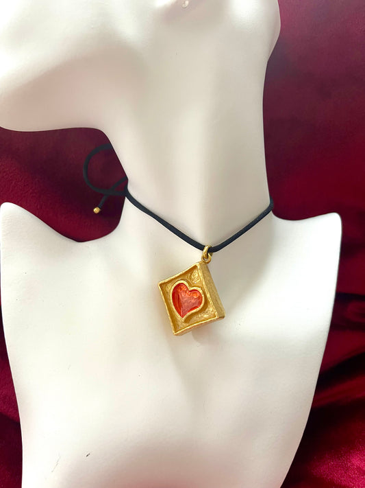 YSL Orange Heart Solid Vintage Opium Perfume Pendant Necklace