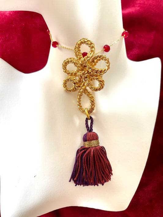 Amber Color Rose Embedded Pendant Yves Saint Laurent Vintage