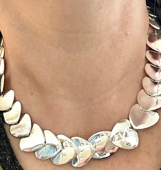 Long Silver Rhinestones Heart Necklace Bracelet Set