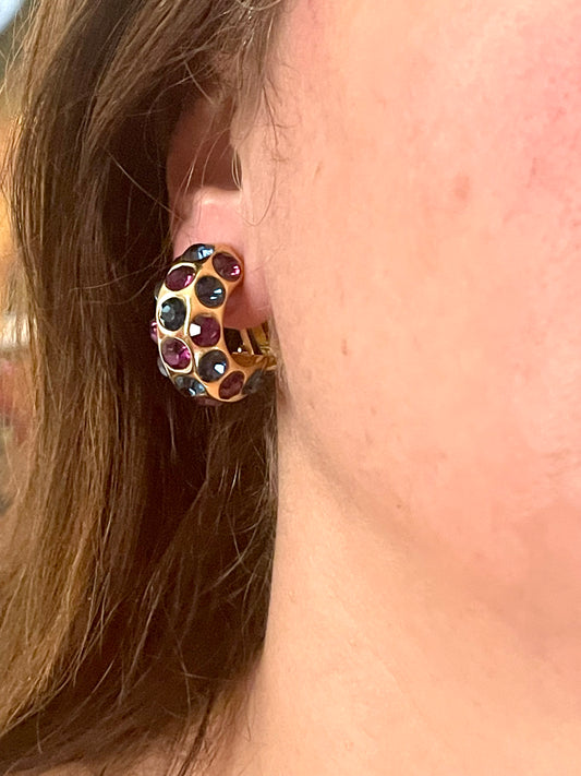 Christian Dior Hoop Vintage Earrings Pink Blue Gold Colors