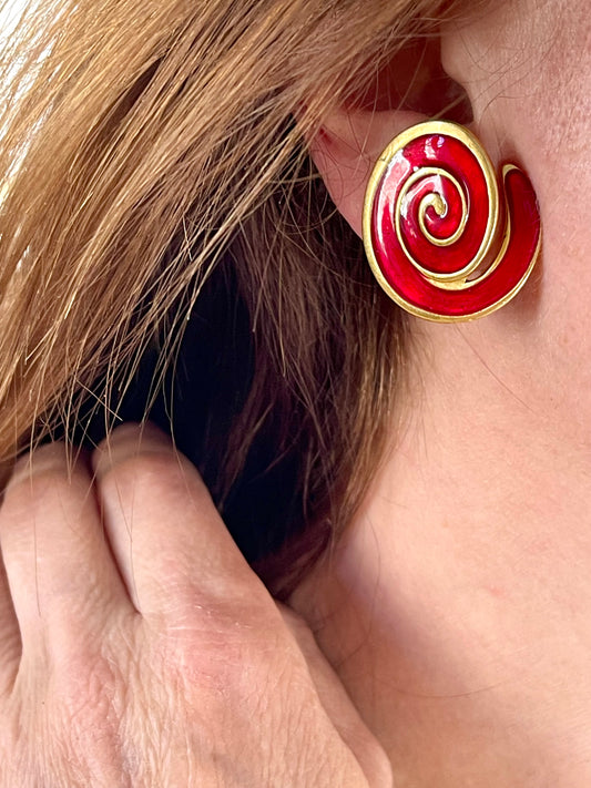 Yves Saint Laurent Vintage Red Swirl Gold Tone Earrings Rare