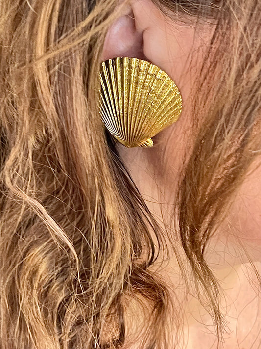 Luxurious Vintage Seashell Earrings – Golden Textured Finish, Collectible Design