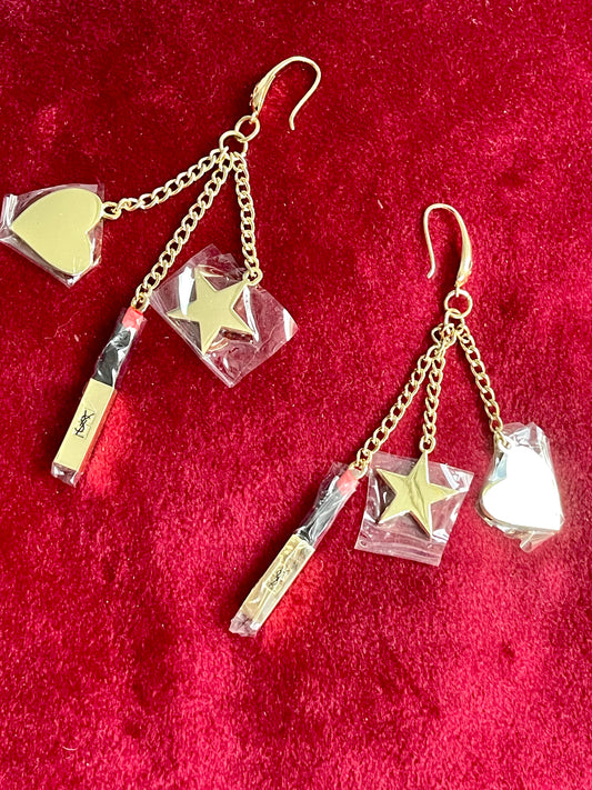 Yves Saint Laurent Beauté Vintage Bag Charms Upcycled Long Chain Earrings – Gold Tone