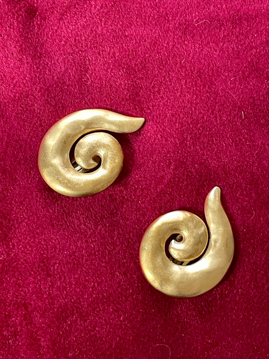 Yves Saint Laurent Vintage Gold Tone Spiral Clip On Earrings 1980s
