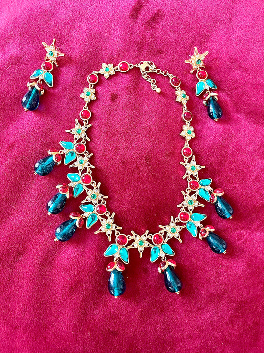 Statement Gold Plated Jewelry Set Necklace & Drop Earrings Haute Couture Style