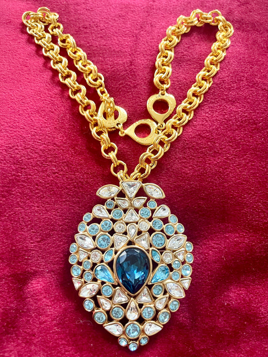 Yves Saint Laurent Vintage Blue Rhinestones Statement Pendant Necklace