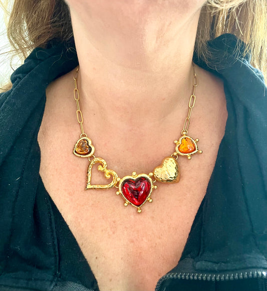 Heart Charms Necklace Vintage Inspired From Yves Saint Laurent
