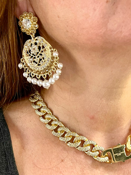 Light Gold Arabesque Metal Rhinestones Earrings Dior Vintage Inspiration