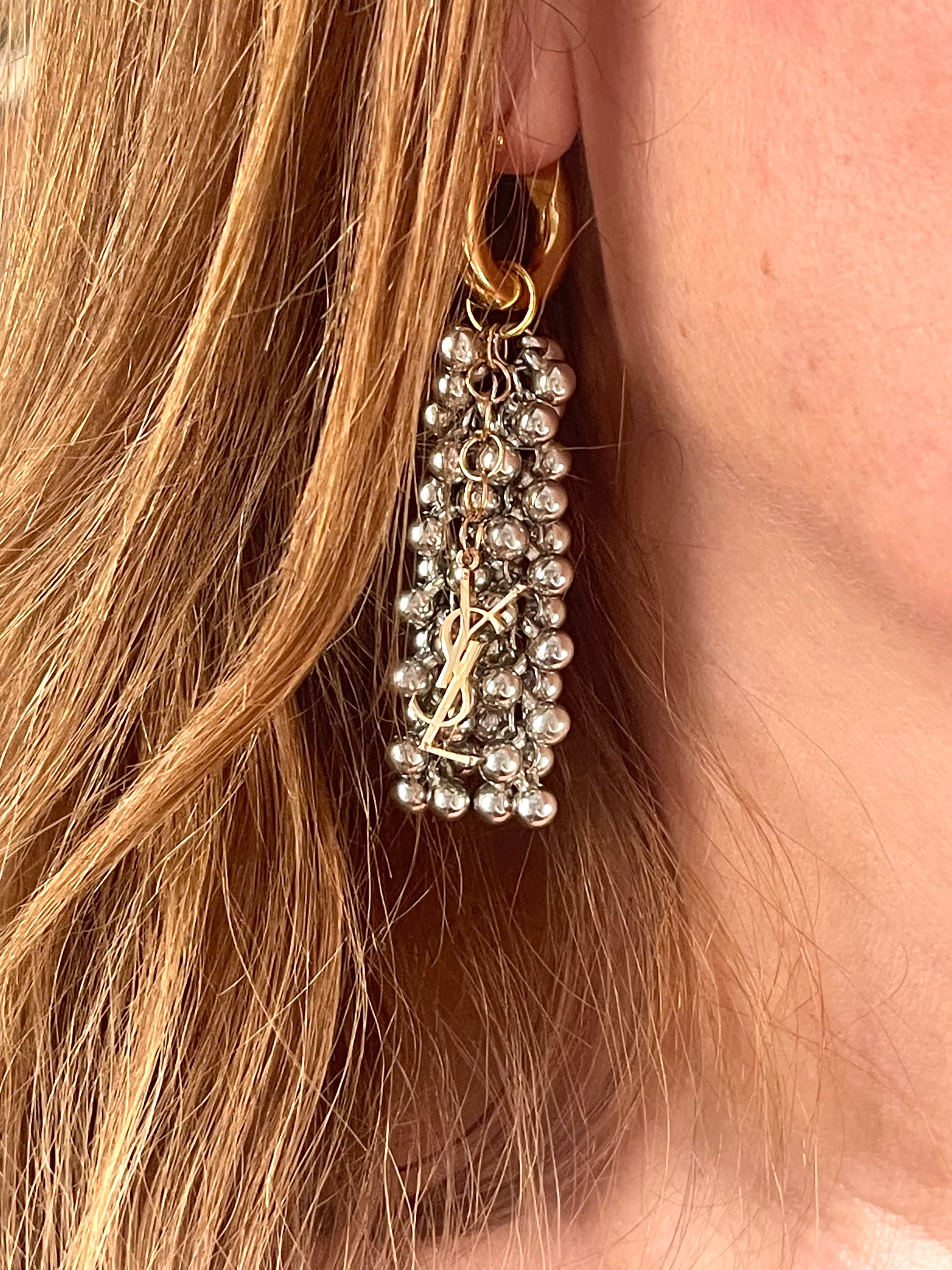 Pendientes vintage de cuentas bitono con dijes de Yves Saint Laurent reutilizados