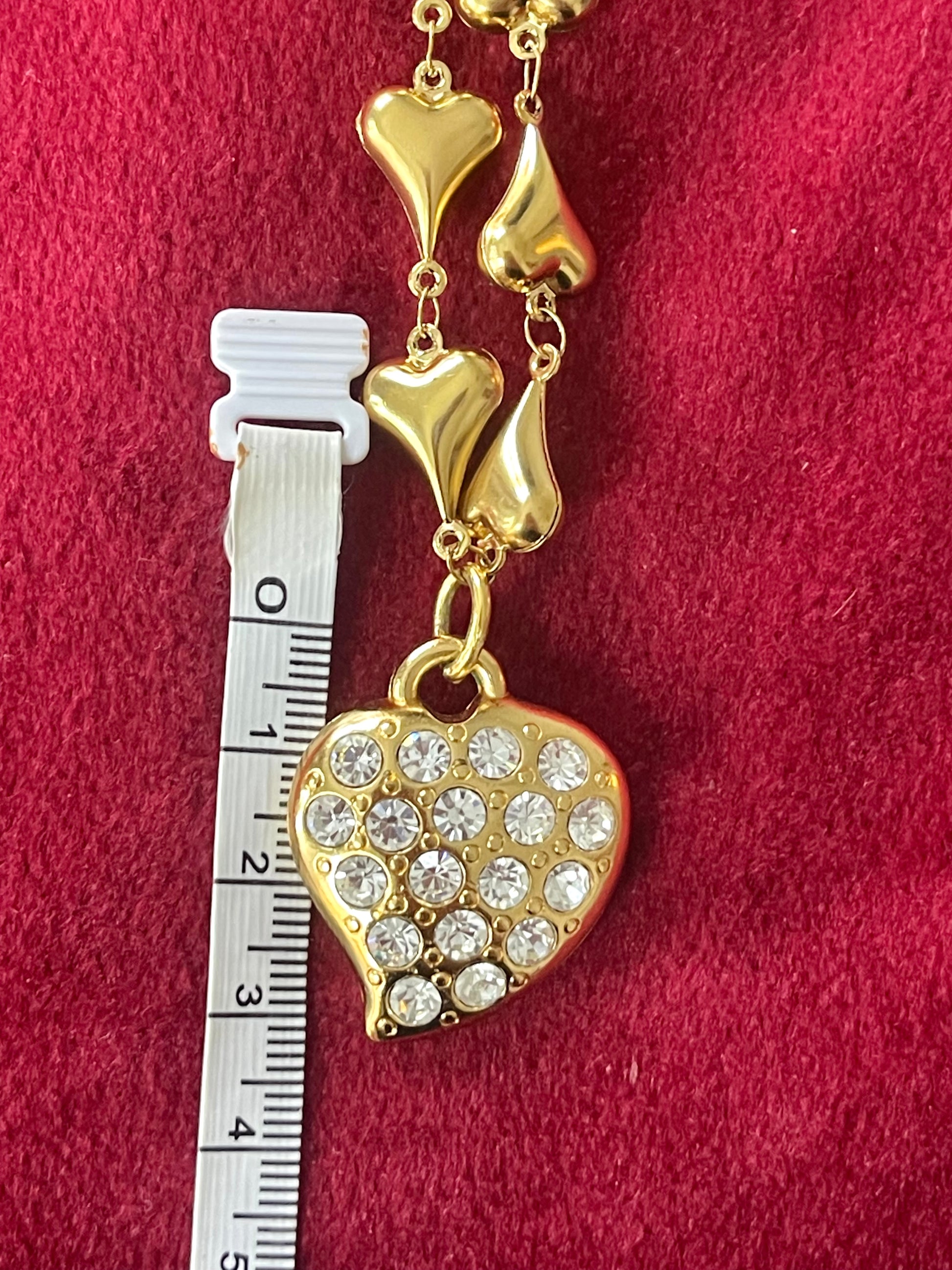 Collar vintage único con colgante en forma de corazón de Yves Saint Laurent YSL, con diamantes de imitación transparentes y cadena de acero inoxidable en tono dorado. Ideal como pieza distintiva y con múltiples opciones de estilo.