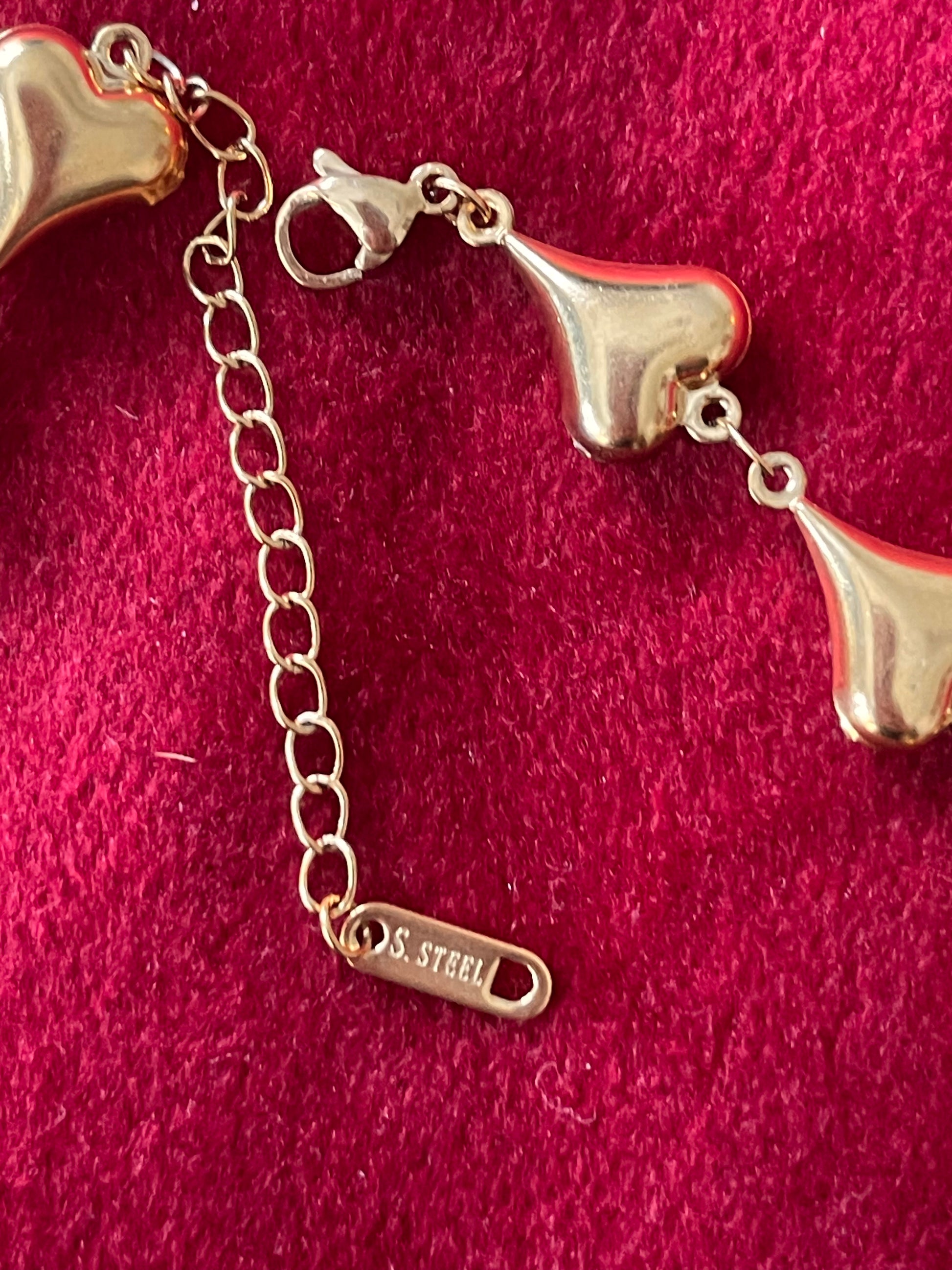 - Cadena ligera de acero inoxidable con eslabones de corazón completamente huecos.