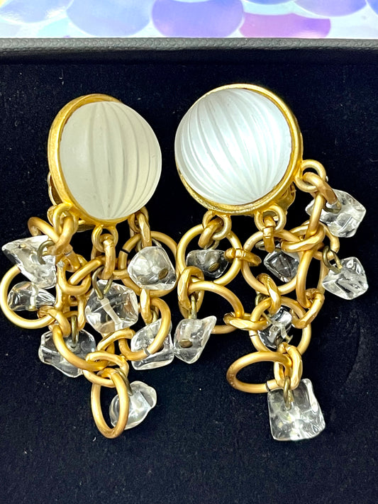 Boucles d'oreilles Arty Gold Heart Pearl Strass Style Vintage Christian Lacroix Yves Saint Laurent