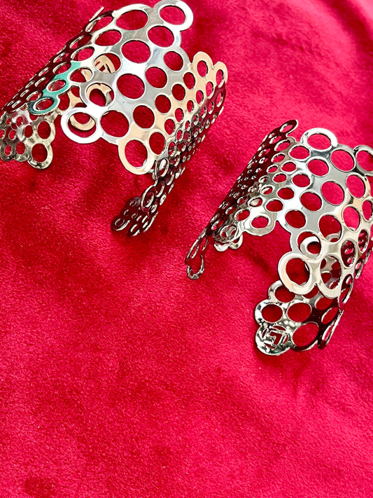 Lot de 2 bracelets manchettes Paco Rabanne vintage – Noir métallisé argenté, inspirés de Lady Million