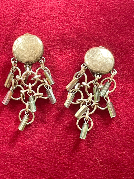 Boucles d'oreilles Paco Rabanne vintage en argent vieilli façon perle