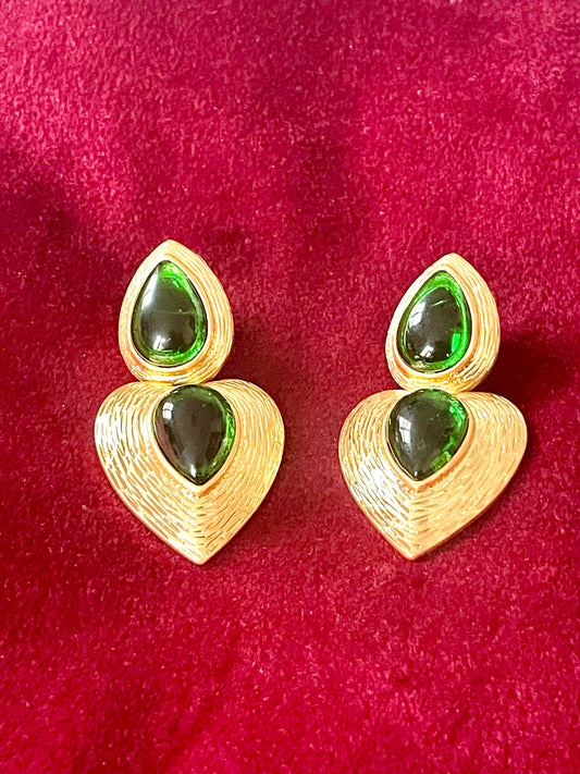Boucles d'oreilles Tear Drop Gold & Green Remake design vintage