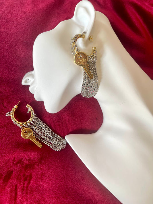 Boucles d'oreilles créoles modifiées Vintage Saint Laurent Golden Keys