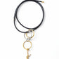 Authentic Vintage YSL Charm Duo-Color Stainless Steel Ring with Leather Necklace