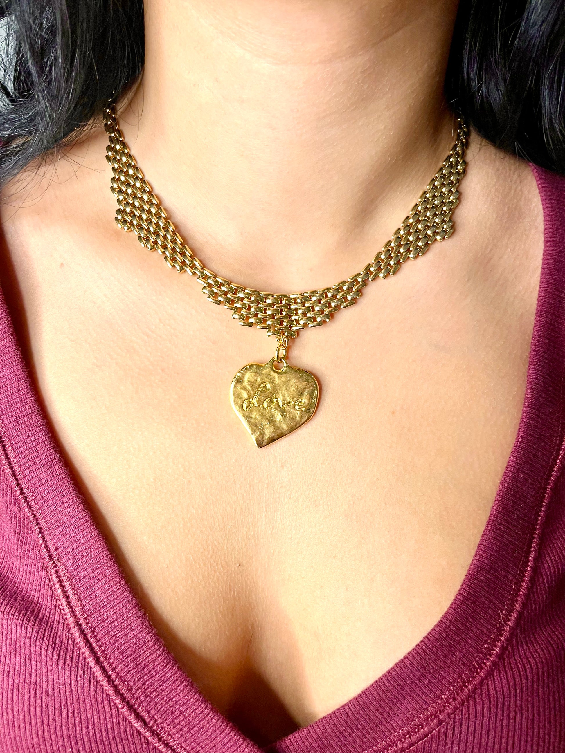 Refurbished18KG Vintage Yves Saint Laurent Love Pendant Monet Necklace