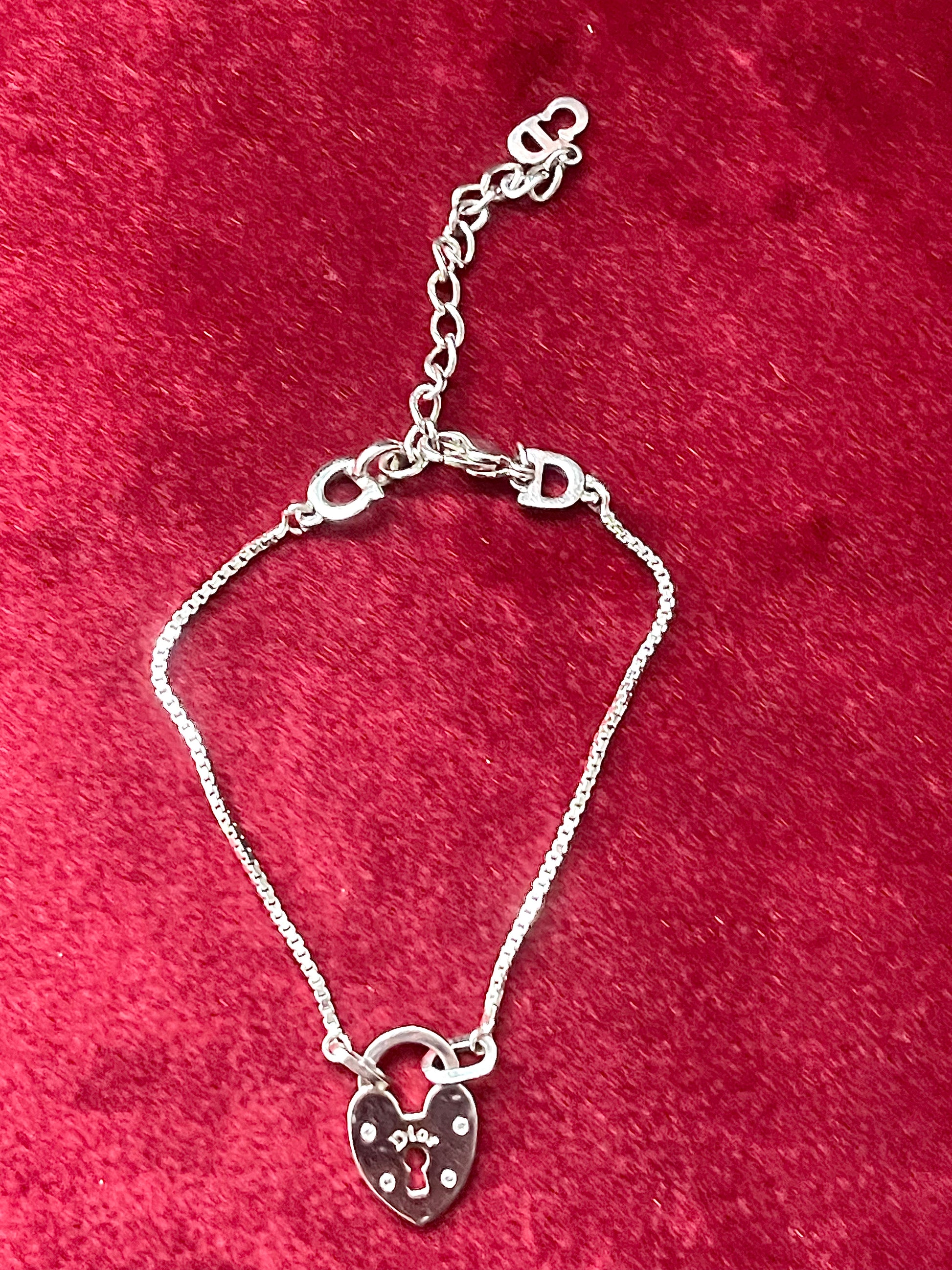 Vintage Dior Silver Tone Heart Lock Charm Authentic Bracelet